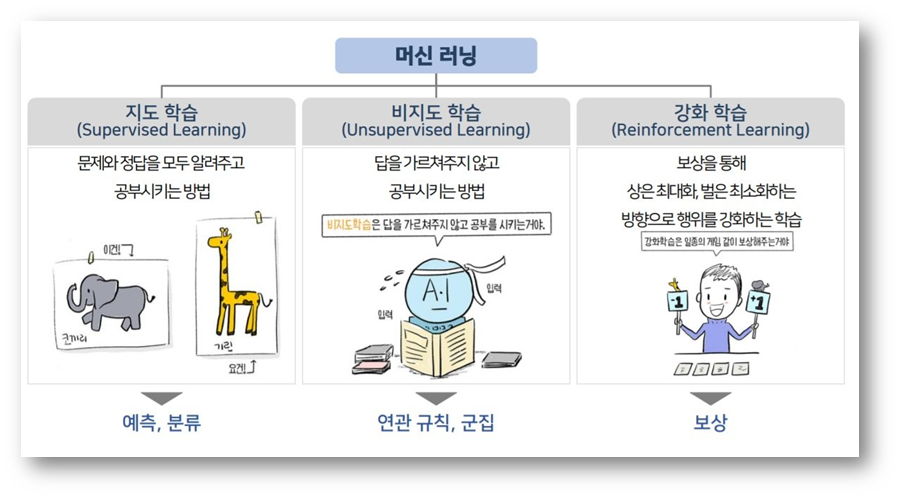 데이터를 바탕으로 데이터에 존재하는 패턴을 파악하고 이를 기반으로 미래를 예측