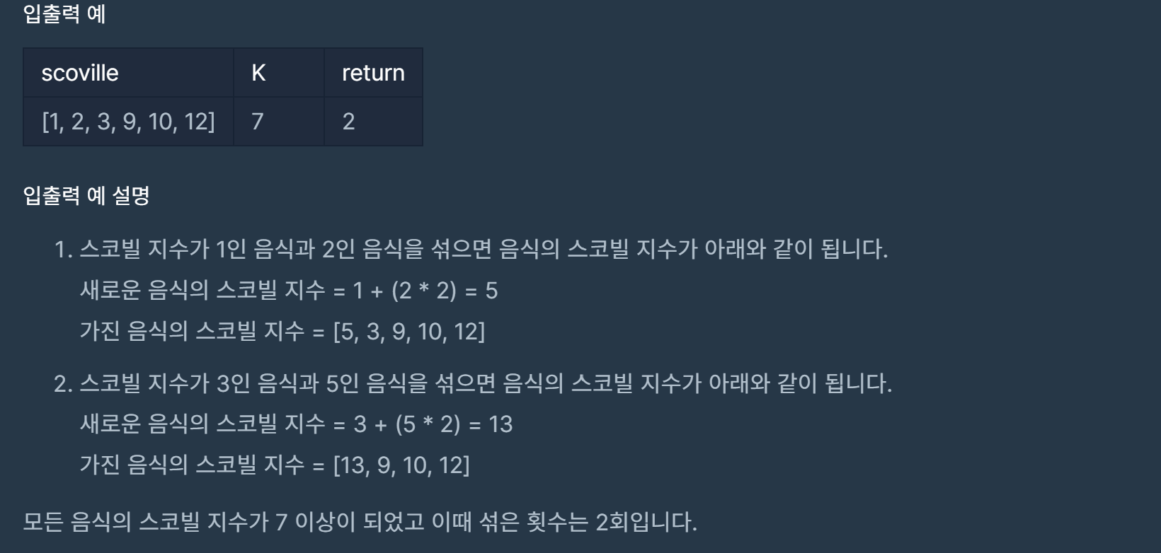 //모든 음식의 스코빌 지수를 K 이상으로 만들 수 없는 경우